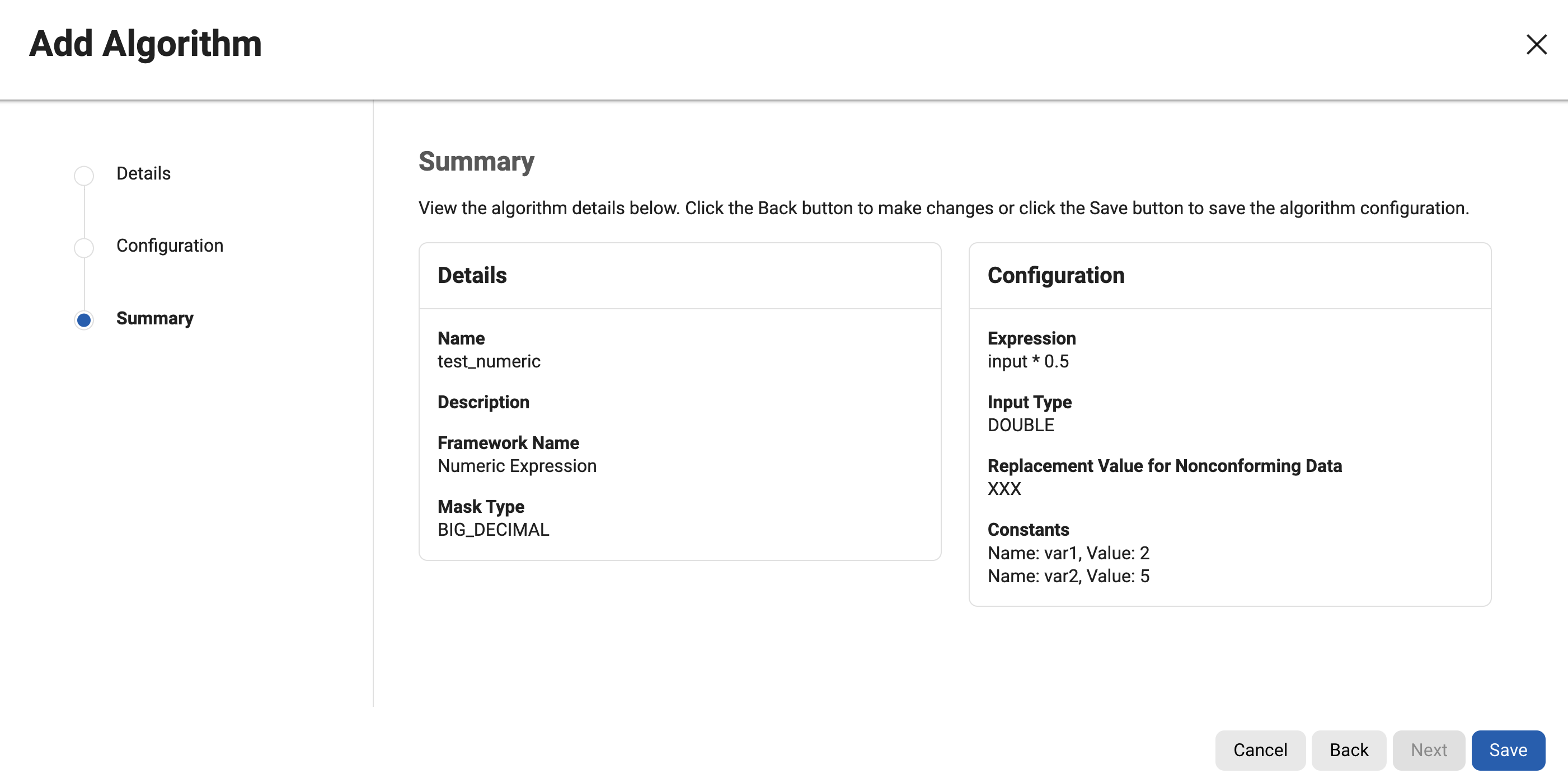 9. Click Next to verify details on the Summary step.numeric expression
