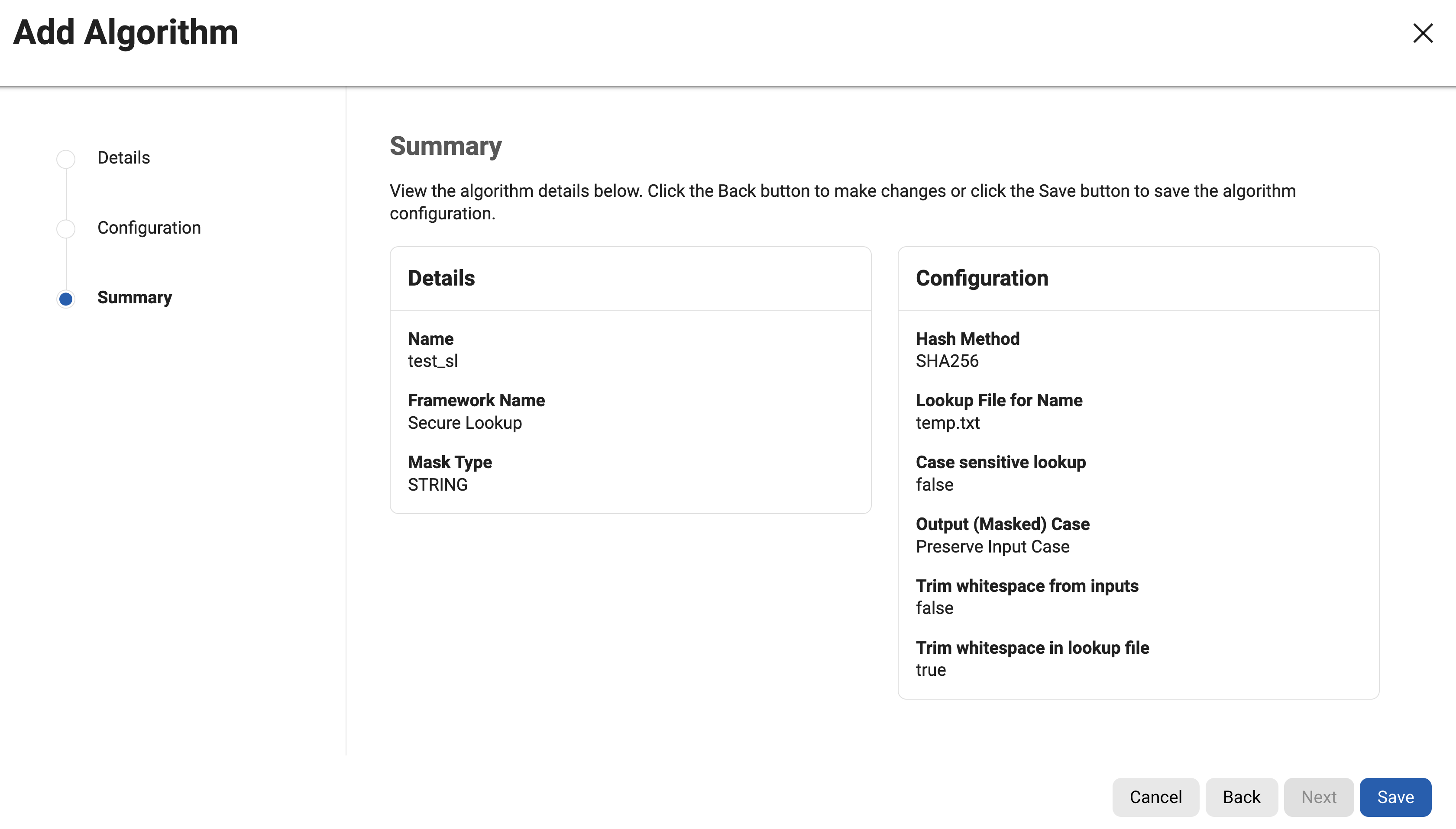 For information on creating Secure Lookup algorithms through the API, see API Calls for Creating Algorithms - Secure Lookup.