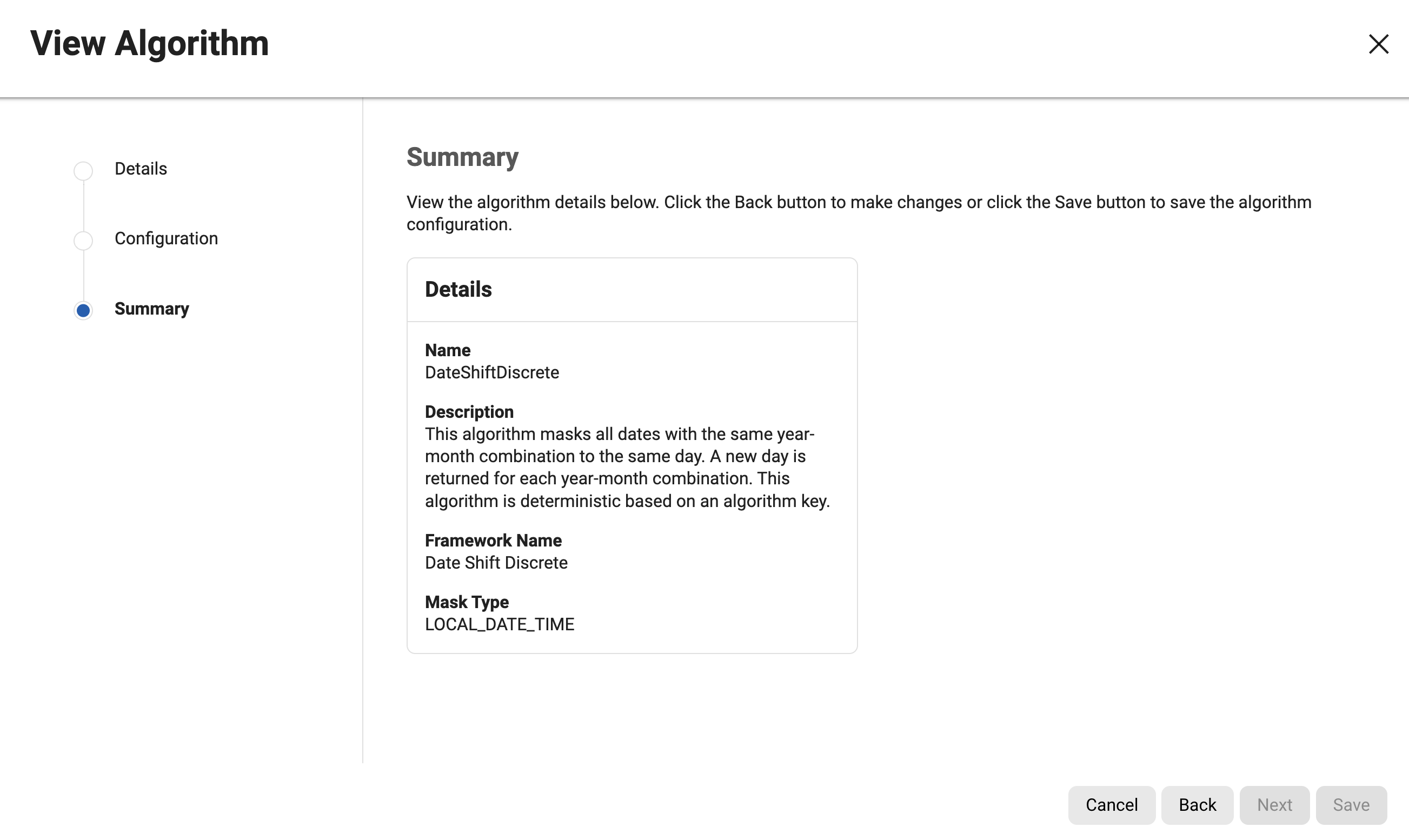 Multi-column algorithms are a special kind of algorithm that allows a single algorithm assignment to be made spanning multiple columns or fields in inventory. This allows coordinated masking of multiple fields - for example, masking two date-time values while preserving the interval between them.