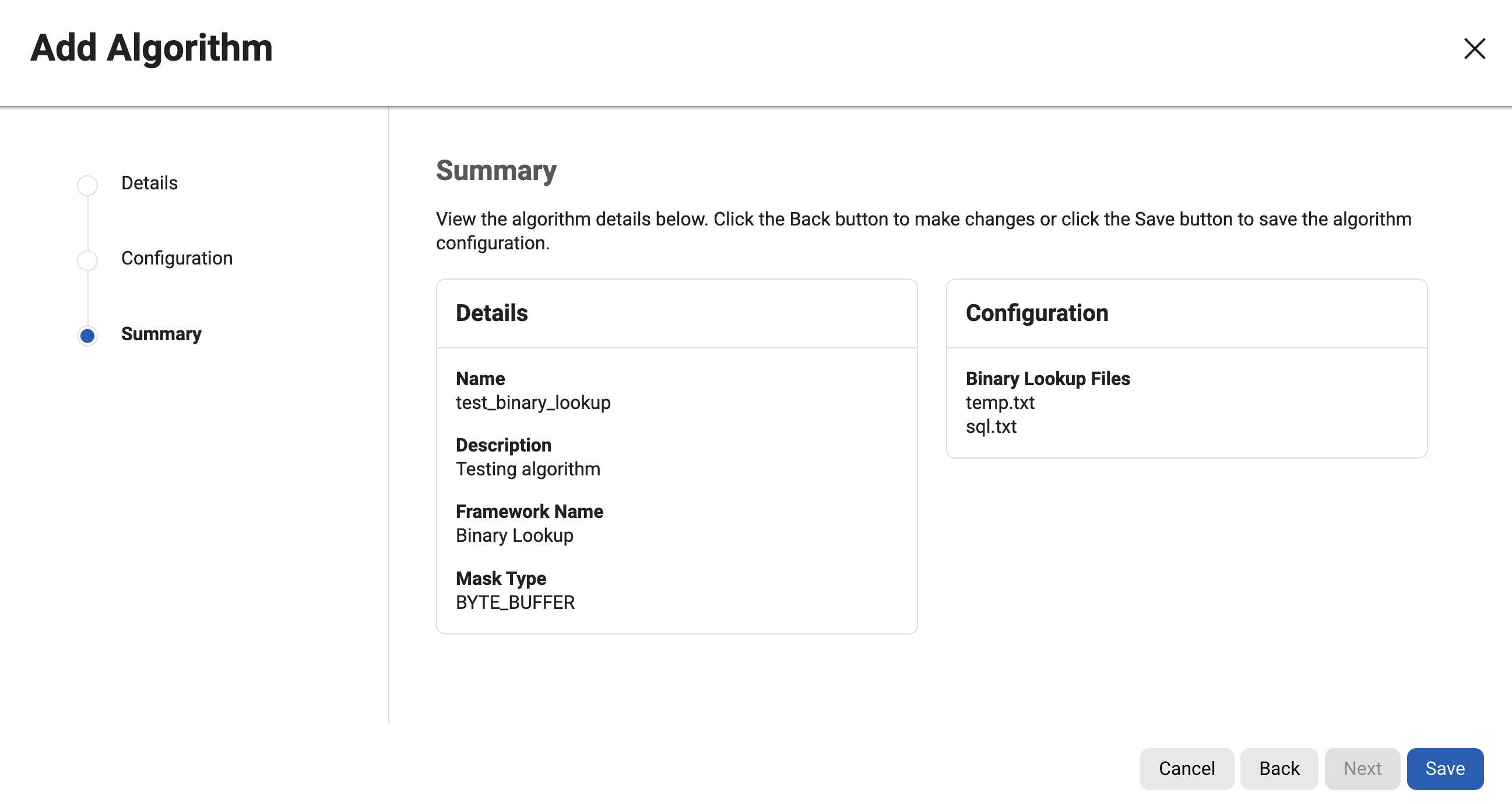 For information on creating Binary Lookup algorithms through the API, see API Calls for Creating Algorithms - Binary Lookup.