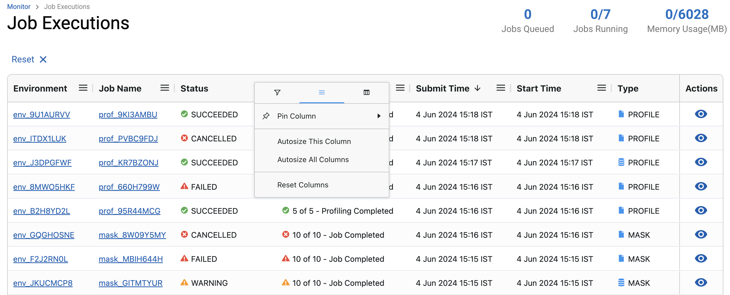 Click on the column again to change the sorting order. A vertical directional arrow symbol indicates the sorting order applied (↑ Ascended, ↓ Descending, and blank default sorting order).