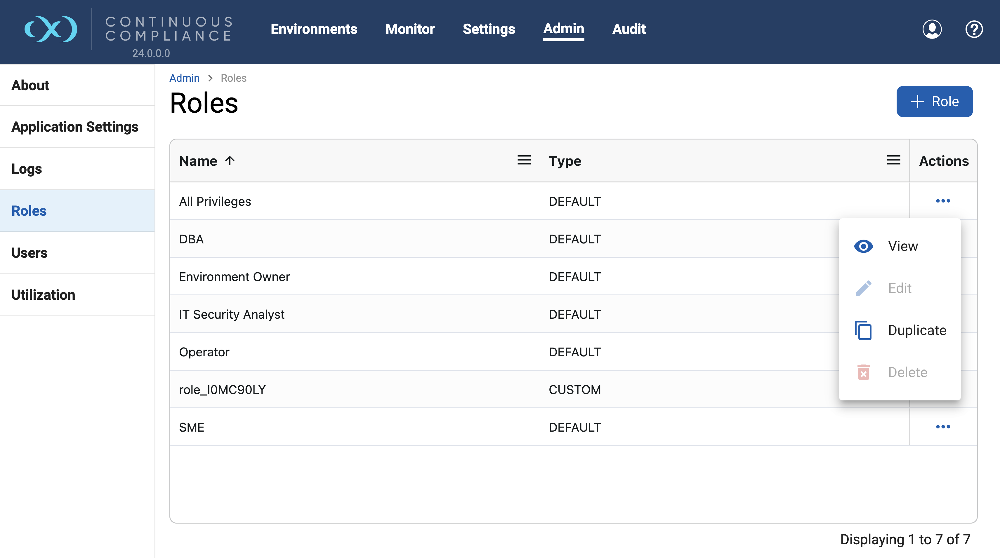 To perform an action on any of the rows, Click the (…) button to the right of the corresponding row under the Actions column, list of actions will be visible. If any action is not supported or not permitted for that row then it will be disabled.