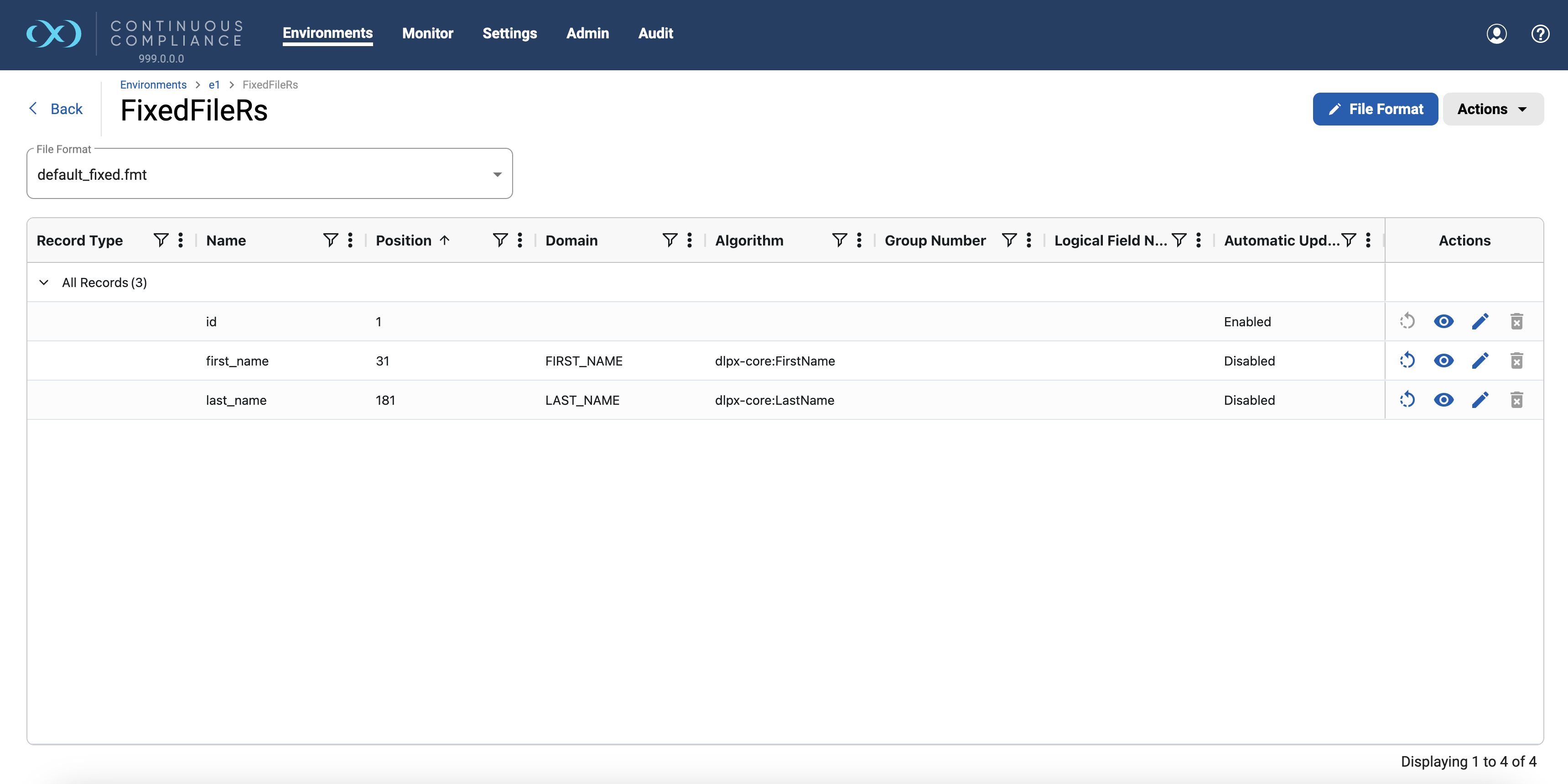 under Actions column in the grid or by going to Settings > Data Format and clicking on the assigned File Format name.