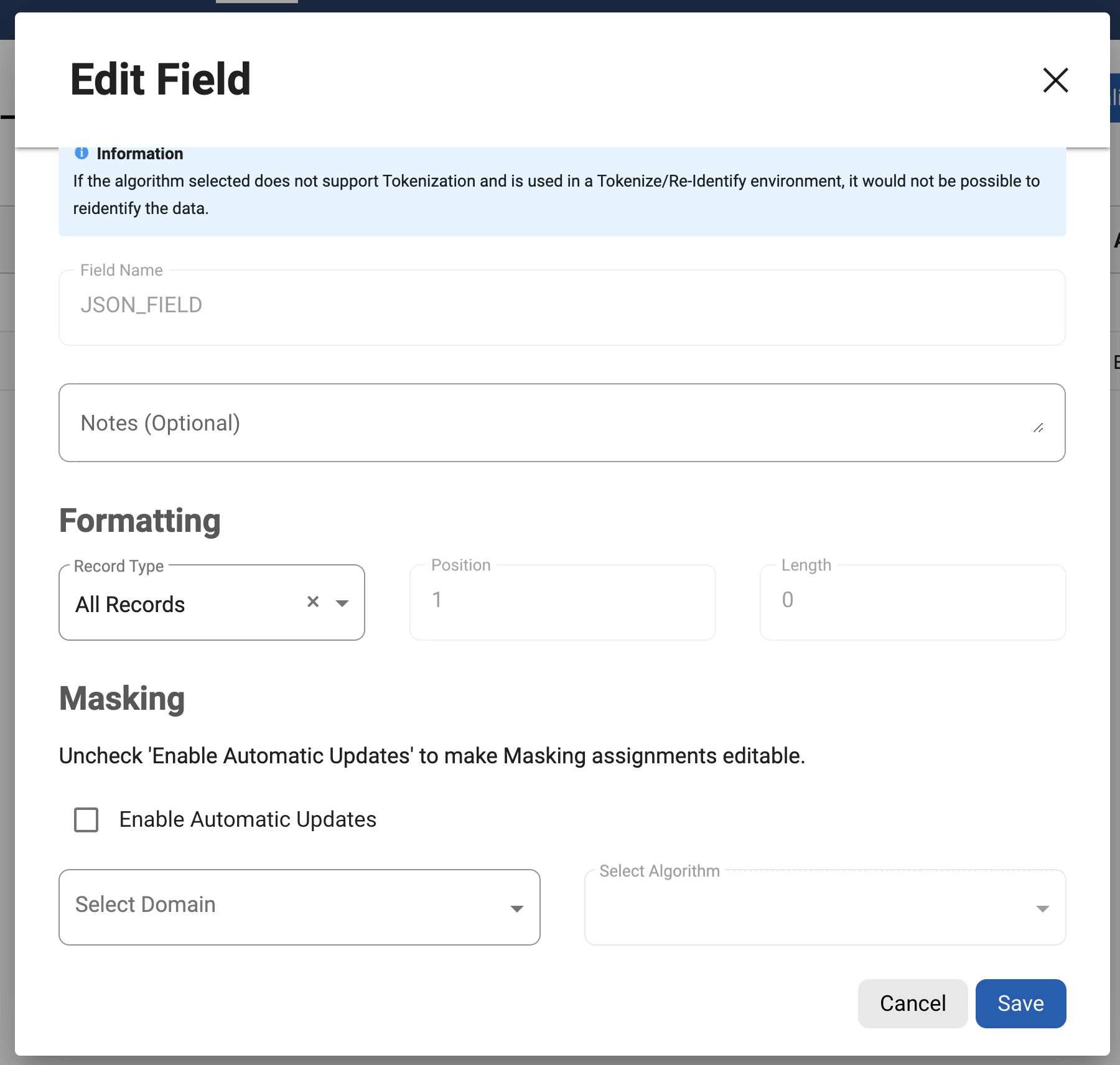 Selecting this option will make the "End of Record Field" disappear. This configuration is no longer necessary because the masking engine will now read the entire file and send it to the algorithm.Note: