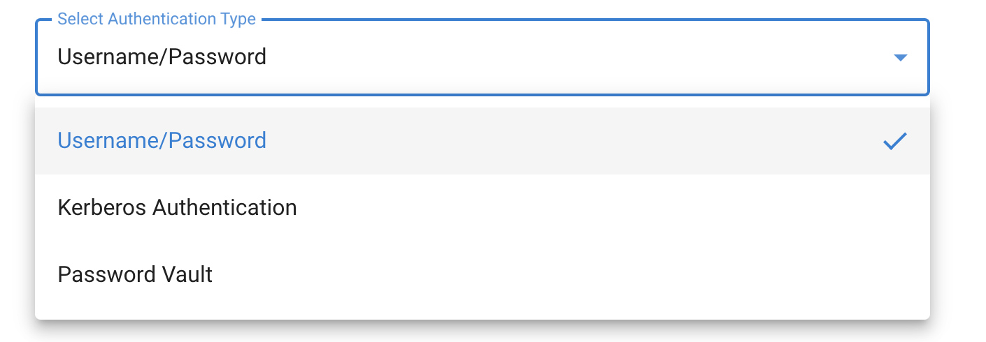 Authentication type dropdown allows you to select the type of authentication you want to provide for the source type selected, the options available here is also determined by the source type selected.