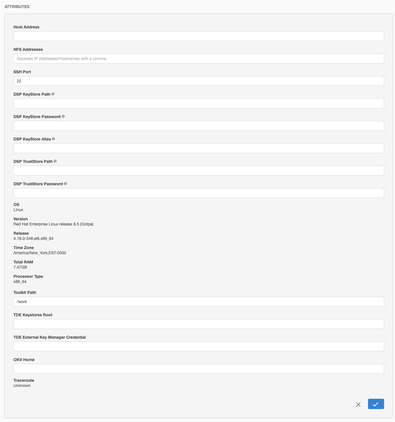 The Target TDE External Key Manager Credential can be specified either in the GUI Host Detail tab under the Attribute section or in the GUI Databases tab under Environments. The value specified at the Database tab under Environments will take precedence.