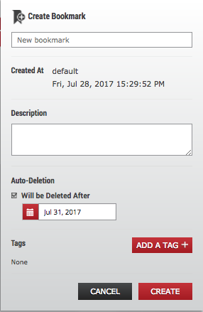 Optionally, set an expiration date. The bookmark will be automatically deleted at the end of this day.