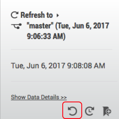 This action reflects the moment of data marked by the closest operation bubble (Refresh, Restore, Reset, or Bookmark) into a new timeline segment on the active branch. It also copies the moment of data into the data sources.