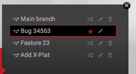 The active branch is distinguished by a red star, which appears at the far right of the timeline, alongside its name in the Branch Name area, and in the Branch tab.
