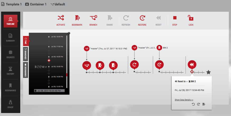 Data templates serve as the parent for a set of data containers, and as a data user, you have the flexibility to restore your container to any point on the template.