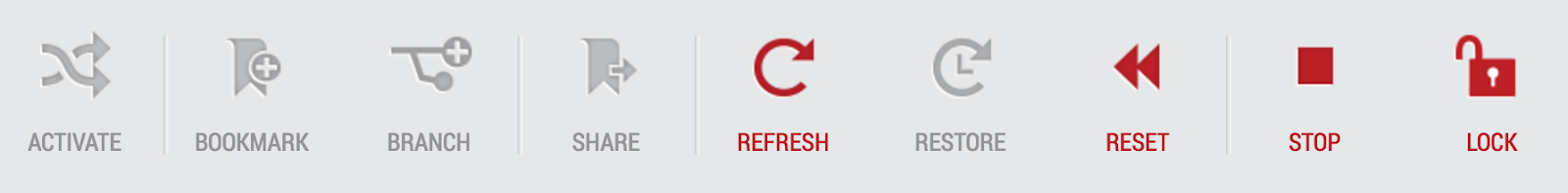In the toolbar, click the button for the data operation that you want to perform at this point in time. Data operations can include Reset, Create Branch, and Create a Bookmark.