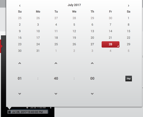 The flyout will not let you pick a date that is before the first point of data time in the container, or after the present moment.