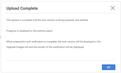 When the upgrade image upload completes, upgrade verification starts automatically.
