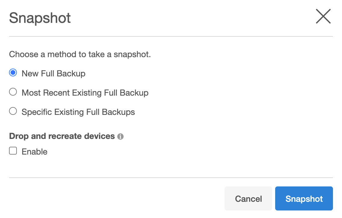 Select the method to take the snapshot. See Quick Start Guide for SAP ASE for information on Delphix Managed Backups.