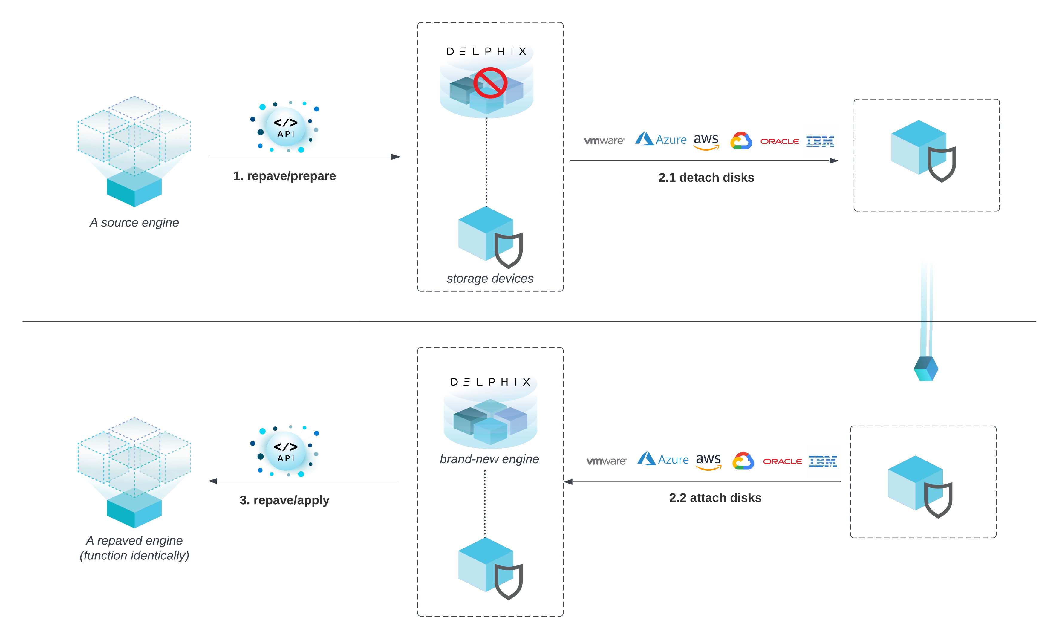 Delphix sysadmin calls repave/prepare to start preparing for repave on the source engine compromised.