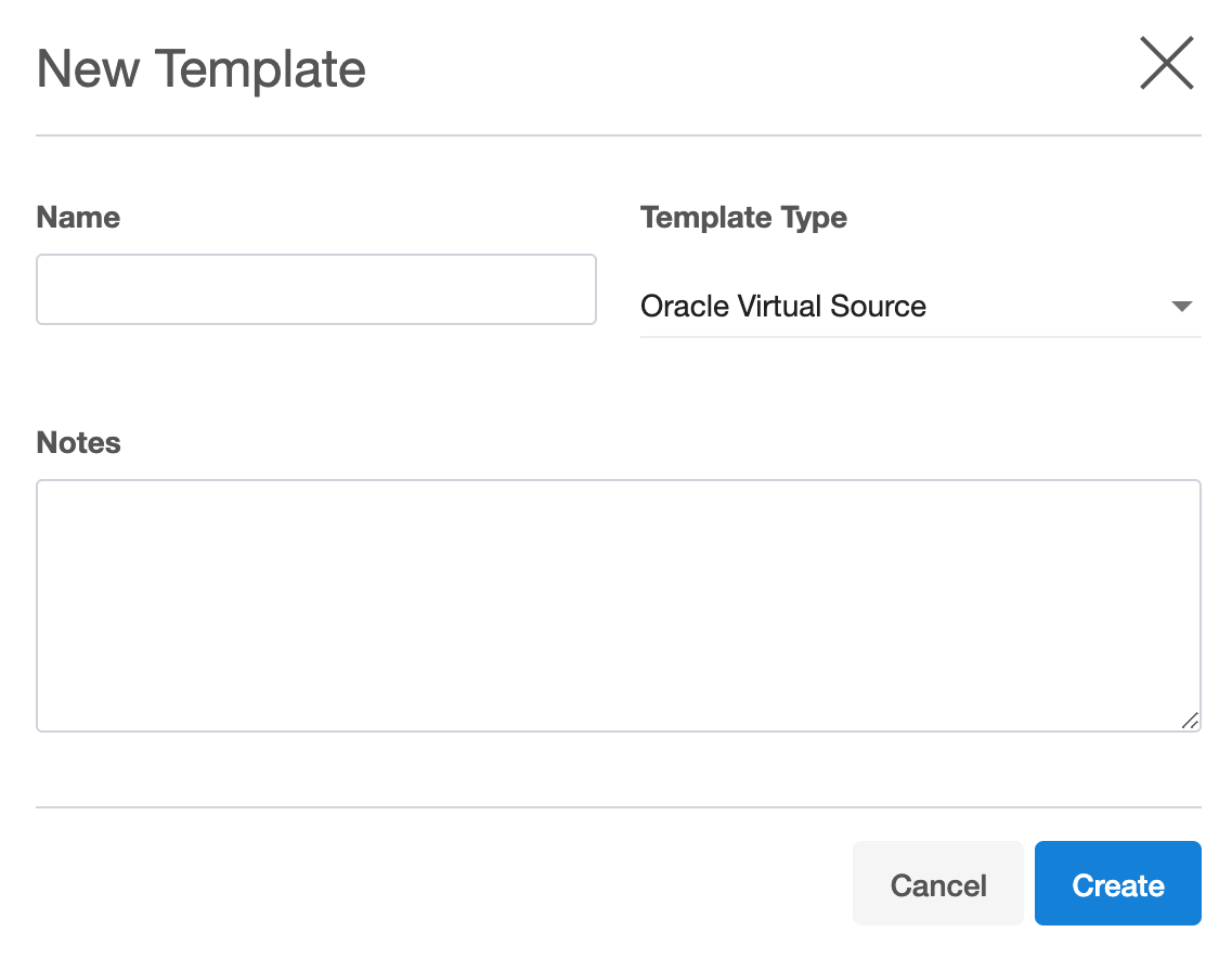 In the New Template dialog, enter the name for the new template, parameters that you want to provide, and select the source type from the available options.