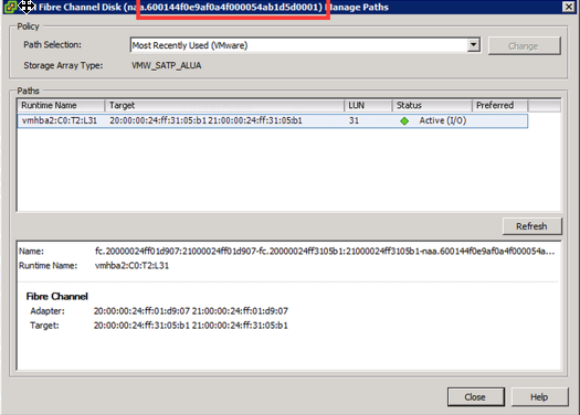 If you are using a VMware RDM disk, note the UUID of the device by looking at its name in the vSphere GUI. For more information, see the Getting the UUID of a RDM Disk from VMware, via the vSphere GUI article.