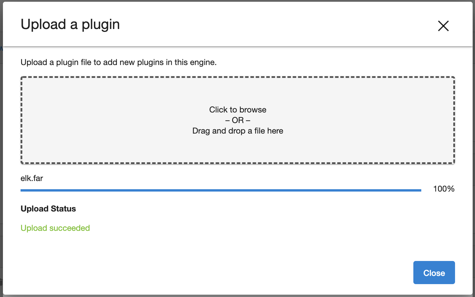 The splunkHec plugin appears by default and cannot be deleted. Additionally, the requestUploadToken operation provides the token you need to upload a plugin via the data/upload API. If you upload a second plugin, it appears in the list. Before you can upload a third plugin, you must select and delete the second plugin.
