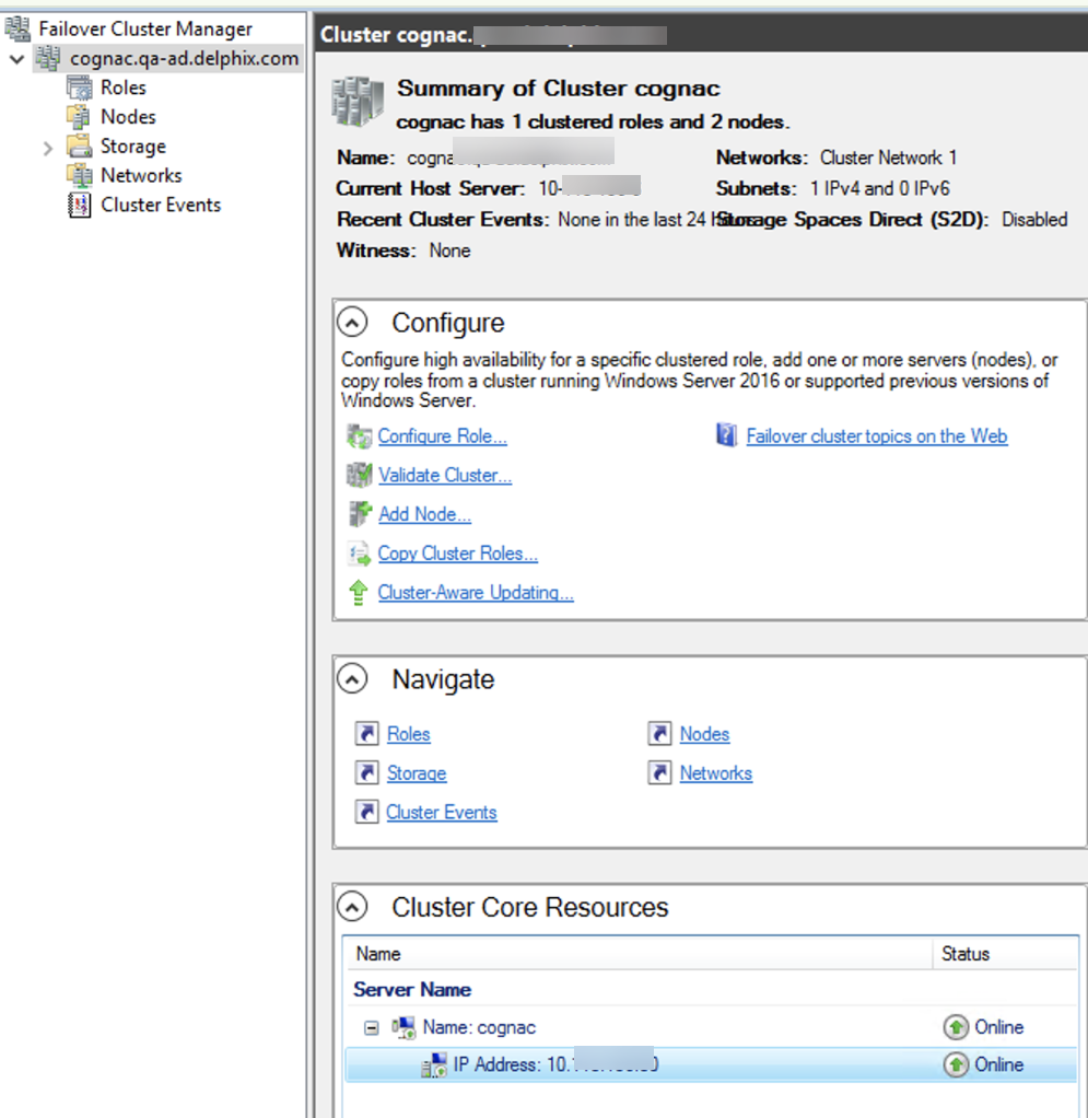 Each clustered SQL Server instance must have at least one clustered disk added to the clustered instance resource group, which can be used for creating mount points to Delphix storage.