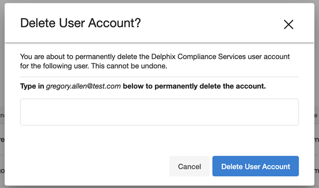 In the confirmation dialog box, enter the user’s email address, then to confirm, click Delete.