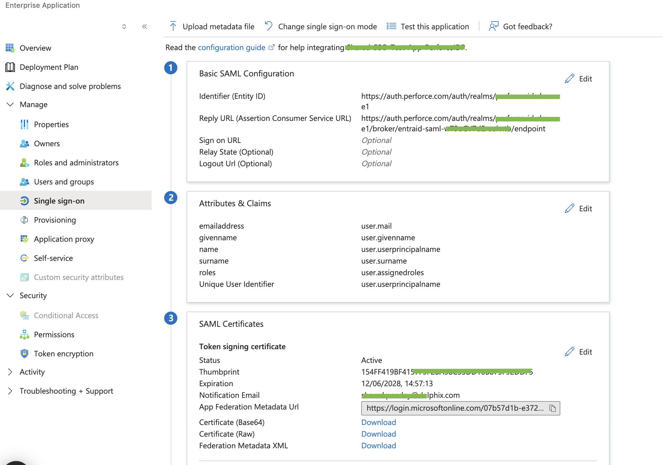 After you complete the configuration using the magic link, update the support ticket and attach a screenshot of the Attributes and Claims section from the configured SSO application. The DCS Support team will review and confirm the setup. Once verified, you will be able to log in using SSO.