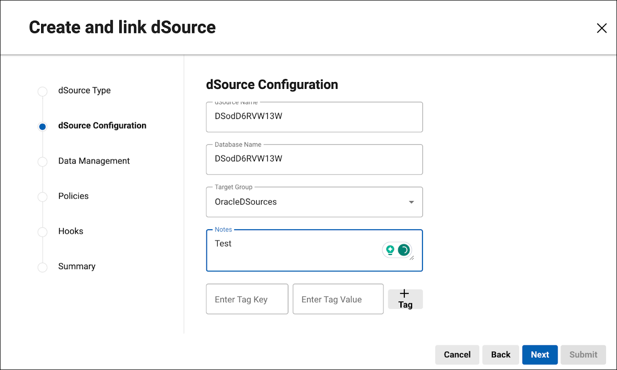Continue through the linking process and after submission, the process of creating an AppData dSource begins. The new dSource will soon be visible on the dSource page, reflecting the configurations made during the linking process.