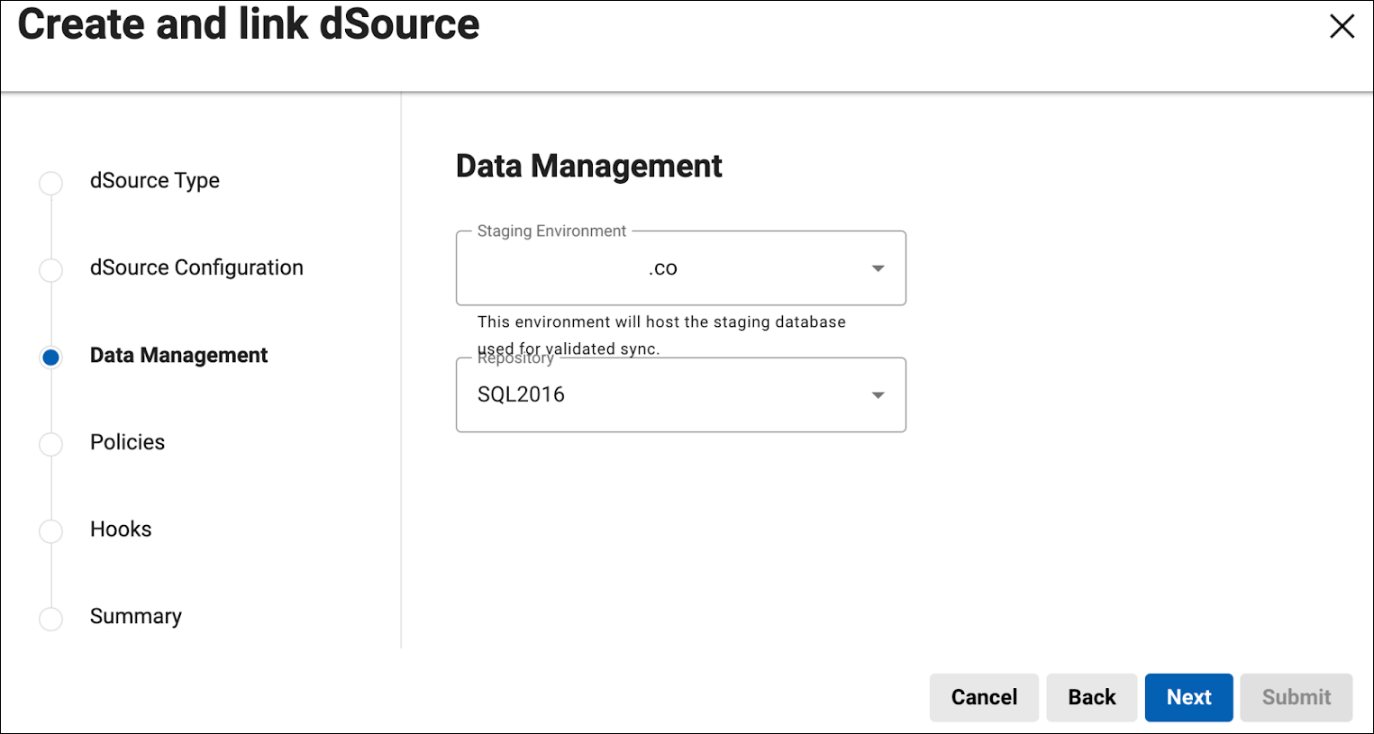 Select AppData source: Initiate the dSource Linking wizard and select the desired AppData source. This selection is crucial in determining the linking procedure.