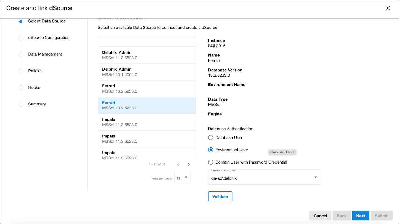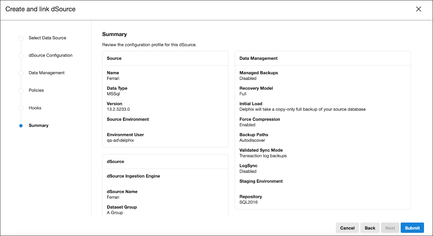 Availability of eligible sources: It is necessary to have access to eligible database sources that can be linked as a dSource. These sources should not already be functioning as a dSource, to avoid redundancy and ensure optimal utilization of the new feature.