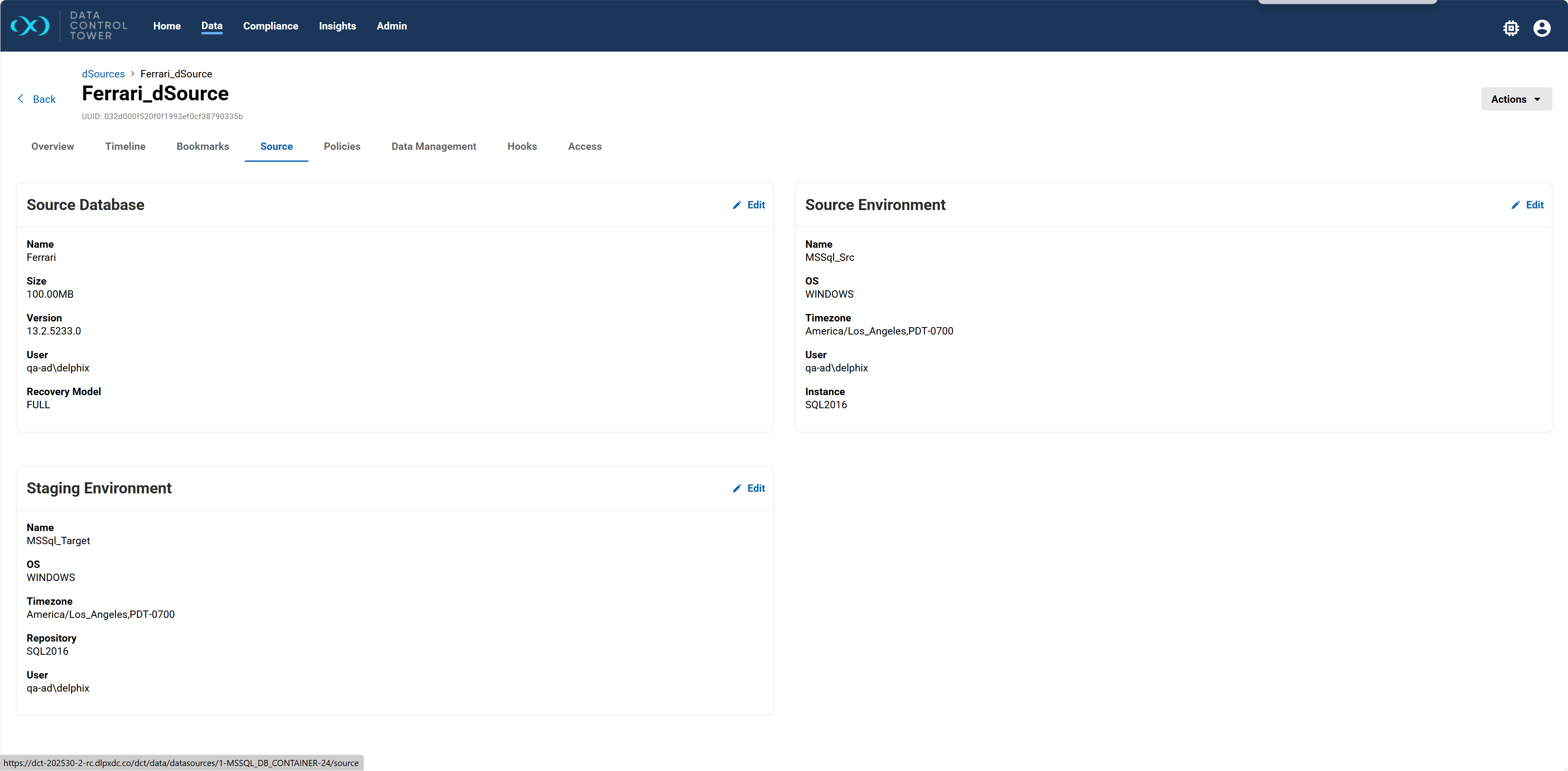 DCT 2025.3.0.0 added support for viewing and editing basic data source configurations for staging environments (MSSQL) and source environments (Oracle).