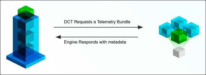 DCT-based communication is lightweight, requiring simple commands or a small telemetry payload to facilitate most workflows. The below graphic demonstrates this style of communication: