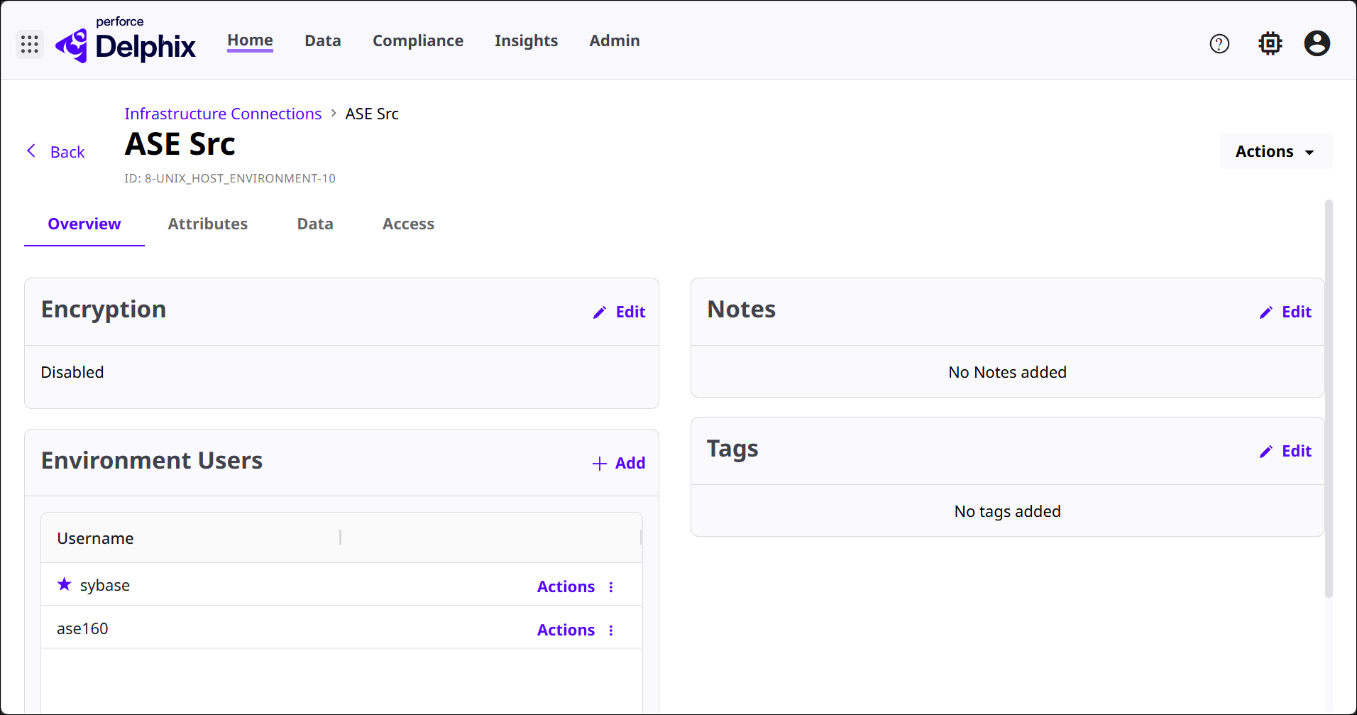 Environment Users: Shows OS‑level or host‑level usernames that DCT can use to access the environment behind this Infrastructure Connection.