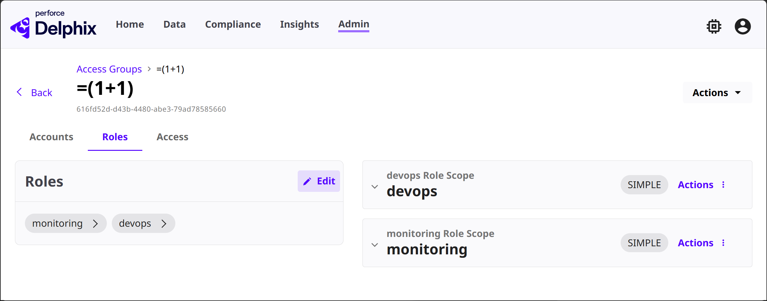 Now you can assign default Roles, such as “devops”, or a newly created one. Role assignment is also possible during Access Group creation. On Save, your Access Group might look like the following.