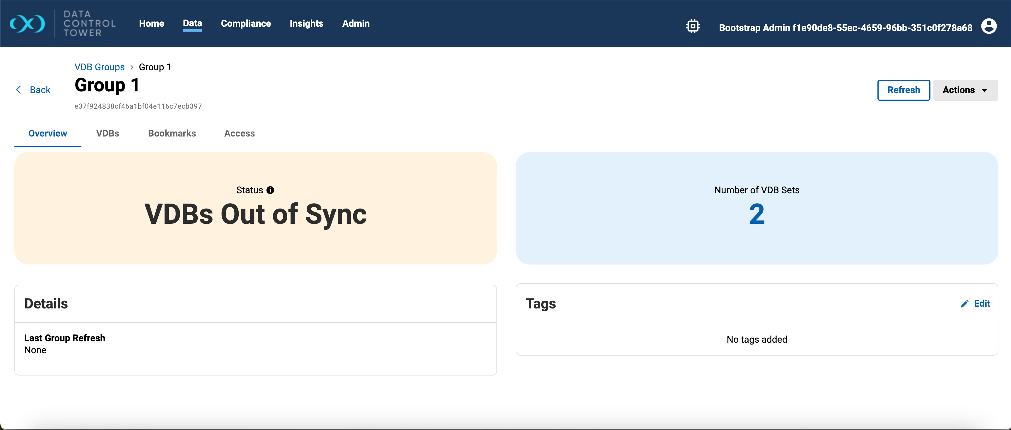 Click Refresh in the top right corner of a VDB Groups' details page for the Refresh wizard.