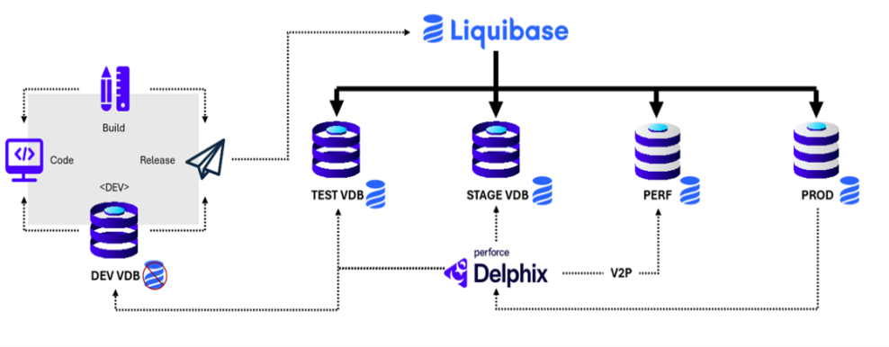 Rapid deployment: Develop and test database schema changes in your development environment using compliant data provided by Delphix. You can then deploy the changes reliably and securely through your CI/CD pipeline into production.