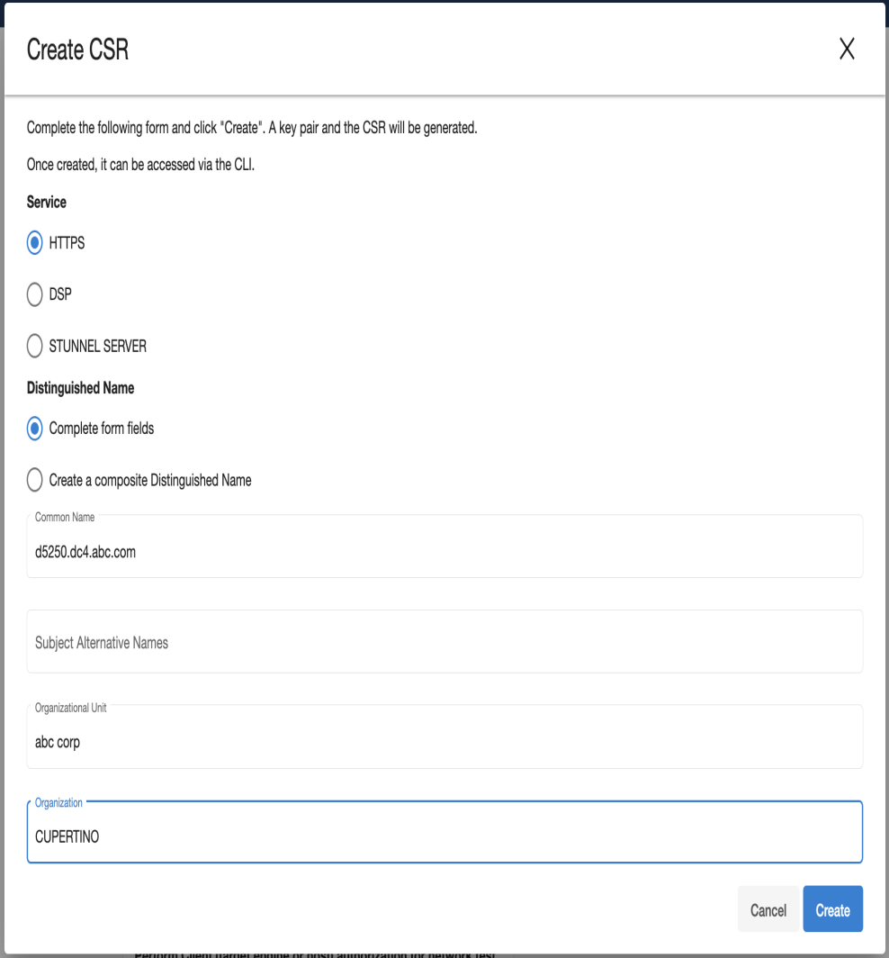 Select the service you want to create a CSR for (HTTPS or DSP).