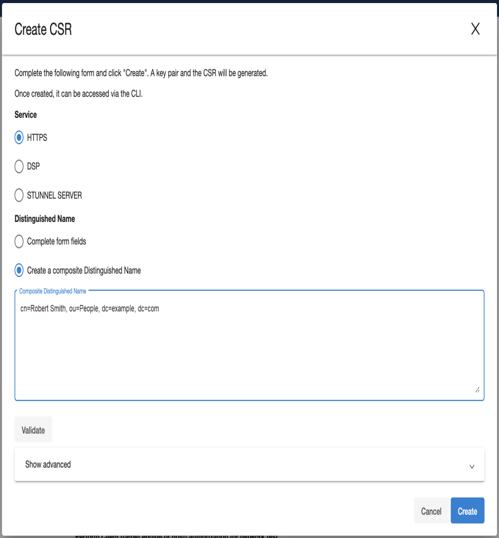 Select how to enter the distinguished name (using the provided fields, or as a composite string).