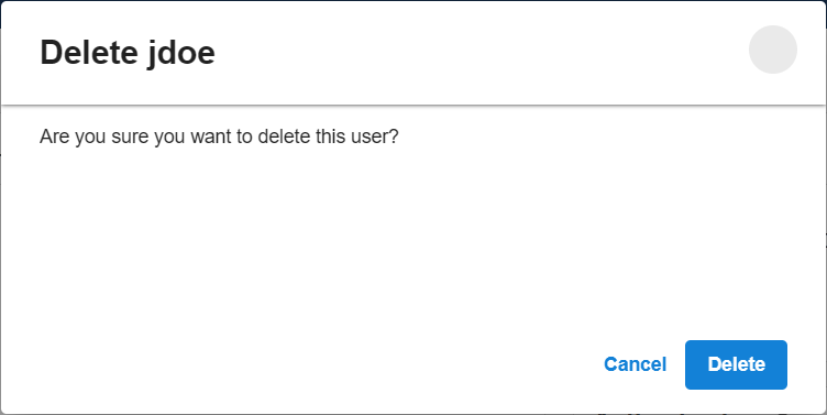 The Delete User dialog box opens. To confirm you want to delete the selected user, click Delete.