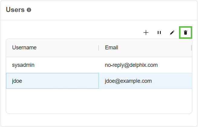 The sysadmin user is a required user for the Delphix Engine. You cannot delete this user, but you can suspend it. Suspending the sysadmin user prevents that user from being able to log into Delphix Setup or to the console via SSH.