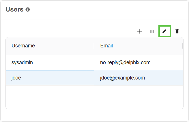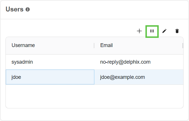 To disable the user, click the pause icon. Your selected system administrator is disabled in the Dashboard > Users panel.