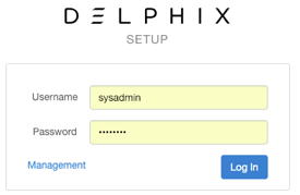 Log in to the Delphix Setup application using the sysadmin username and password.